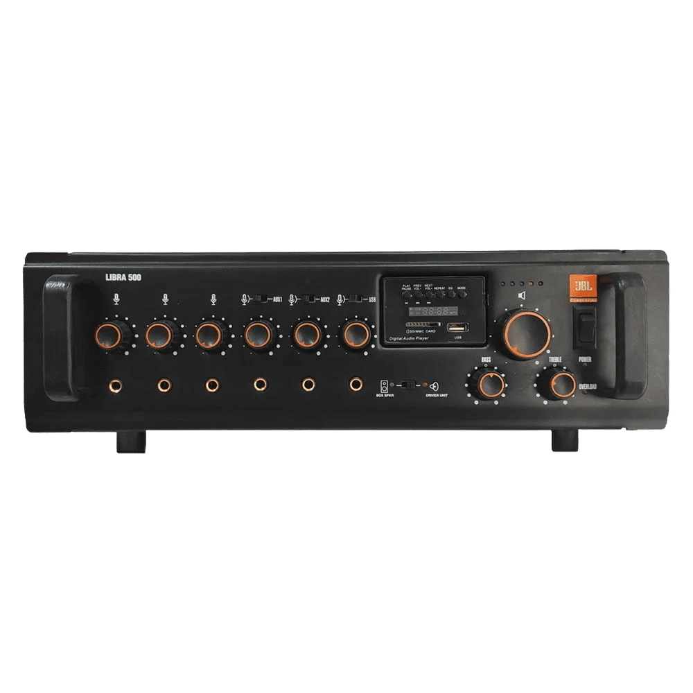 The JBL Libra 500 Mixer Amplifier delivers powerful and balanced audio with reliable performance. Its intuitive controls make managing input sources simple, and the sound is clear and consistent for both music and announcements. Built with JBL’s trusted quality, it’s a solid choice for medium-sized halls, classrooms, and commercial PA systems.
